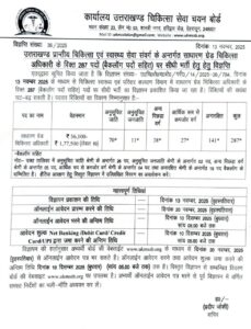 विज्ञापन की शर्तानुसार अभ्यर्थी बोर्ड की वेबसाईट www.ukmssb.org के माध्यम से दिनांक 20 नवम्बर, 2025 (बृहस्पतिवार) से ऑनलाईन आवेदन पत्र भर सकते है। ऑनलाईन आवेदन करने तथा आवेदन शुल्क जमा करने की अन्तिम तिथि दिनांक 10 दिसम्बर 2025 (बुधवार) (सांय 05.00 बजे तक) तक है। विस्तृत विज्ञापन से सम्बन्धित विवरण बोर्ड की वेबसाइट www.ukmssb.org पर उपलब्ध है। अभ्यर्थी ऑनलाईन आवेदन पत्र भरने से पूर्व विज्ञापन में वर्णित समस्त निर्देशों भली-भाँति अध्ययन कर लें।